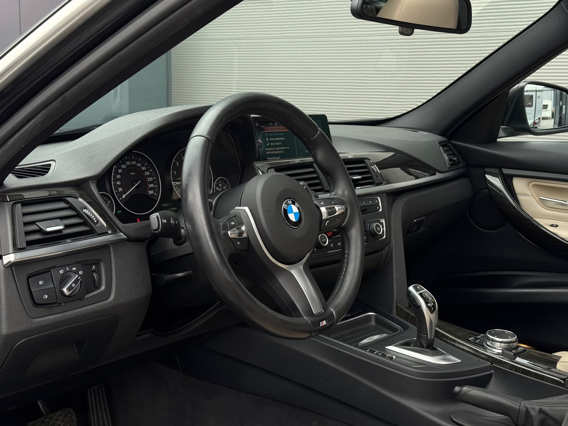 Prachtige BMW 3-Serie 320i M-sport. De auto verkeerd in nette staat en is volledig dealer-onderhouden. Voorzien van de luxe Dakota ledere oyster stoelen, Een panorama-dak, Stoelverwarming, Trekhaak en meer!